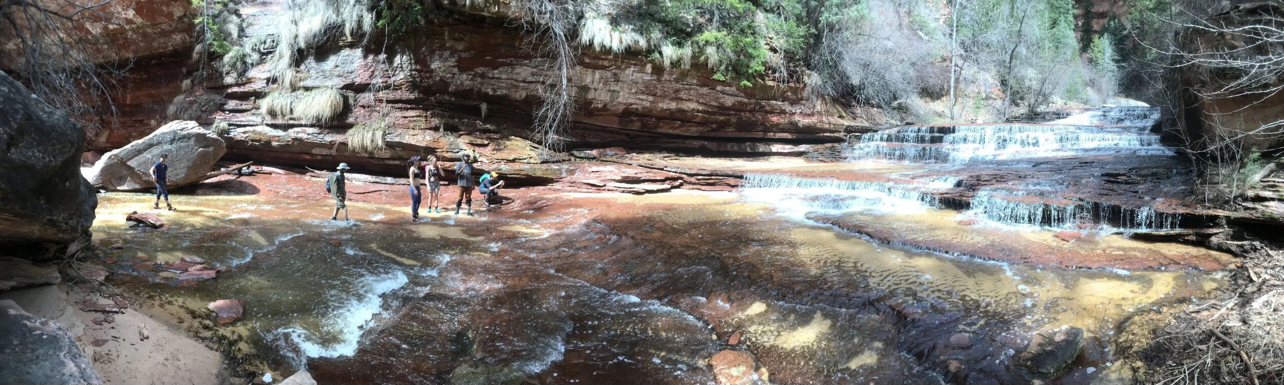 I genuinely loved this portion of the hike. The thousands of small waterfalls cascading down the pancake-like red shale made every step precarious but satisfying. I wish we had a picture of my favorite portion, the steepest subsection of this second stage. The rest of our crew took the trail. I couldn’t help myself. I needed to climb this gorgeous stack of red rock. I needed to touch it, be a part of it. I felt the implicit peer pressure pulling at me, but the pull of the falls was stronger. Much stronger. I made the right choice.