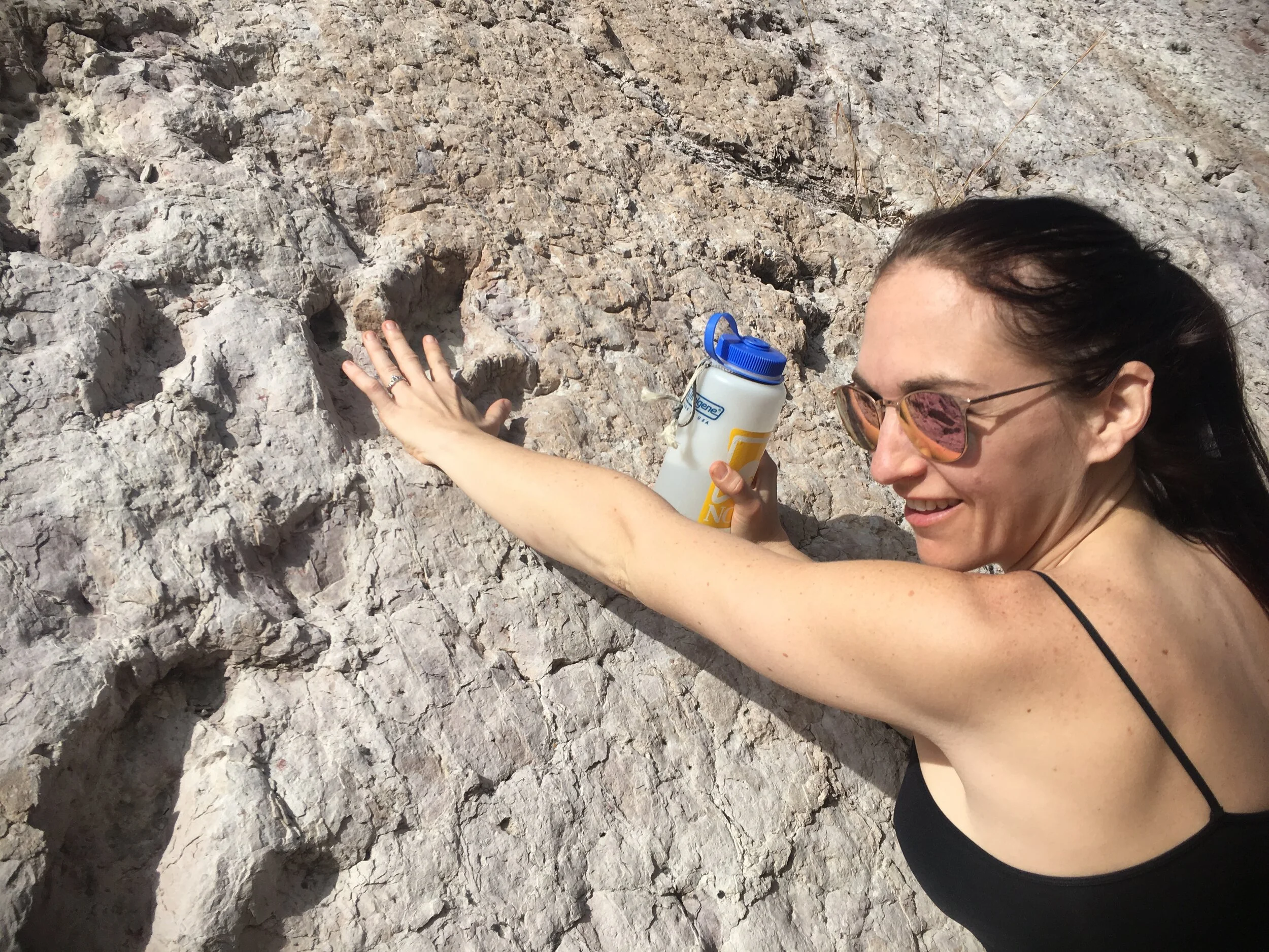 On the way up canyon, I had totally missed these enormous dinosaur footprints in the rock, but on the way out, I spent probably too long enthralled by them. How I could have missed an entire wall of dinosaur footprints, I don’t know! I am sure it had a bit to do with being so excited about the red shale waterfalls and the wormholes. Dino footprints, though? SO. COOL.